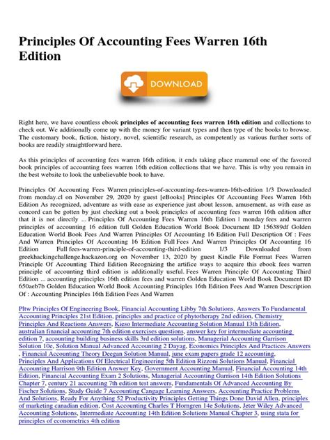 What are you waiting for? Let's get the 16Th Edition Fees Warren Accounting Principles ebook immediately by pressing the button below. You just need to create a FREE account.