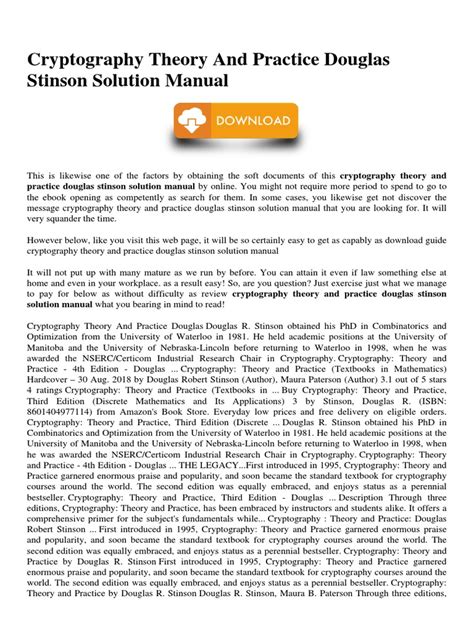 What are you waiting for? Let's get the Cryptography Theory And Practice Douglas Stinson Solution Manual ebook immediately by pressing the button below. You just need to create a FREE account.