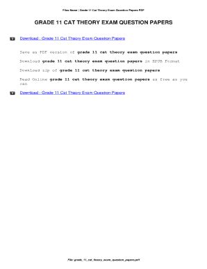 What are you waiting for? Let's get the Grade 11 Cat Theory Exam Papers ebook immediately by pressing the button below. You just need to create a FREE account.