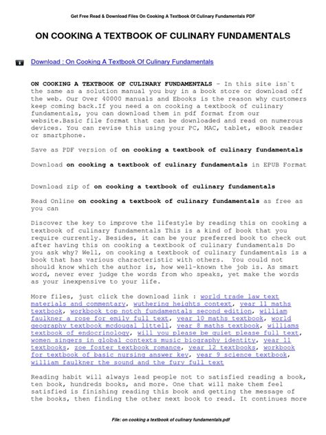 What are you waiting for? Let's get the On Cooking A Textbook Of Culinary Fundamentals 5Th Edition Pdf ebook immediately by pressing the button below. You just need to create a FREE account.