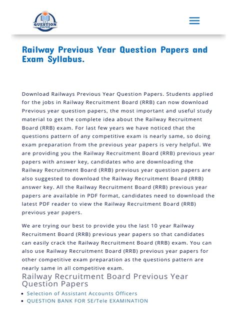 What are you waiting for? Let's get the Railway Exam Previous Year Question Papers ebook immediately by pressing the button below. You just need to create a FREE account.